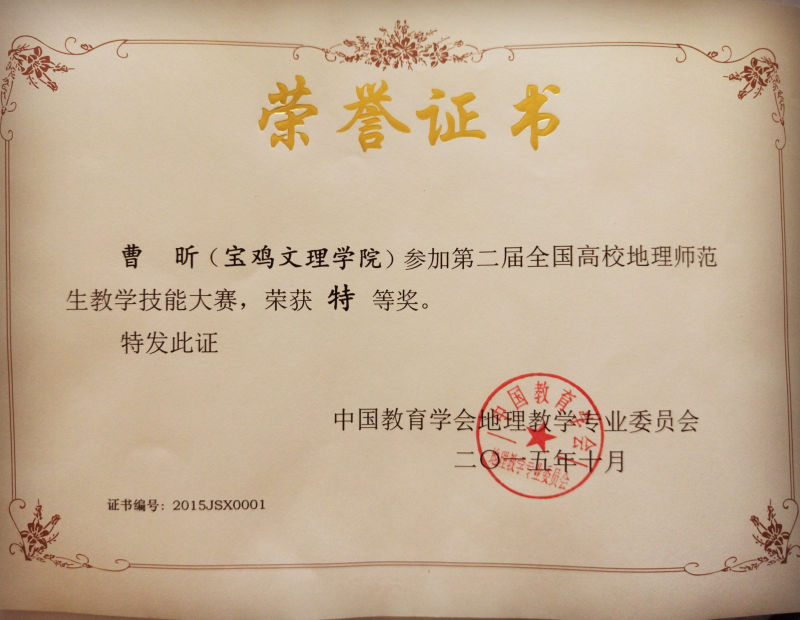 在第二届全国高校地理师范生“中教启星杯”教学技能大赛中,beat365官网地理与环境学院选派的2名选手在本次大赛上取得好成绩。其中,曹昕获得特等奖,王宝琪获得一等奖,万红莲副教授被评为优秀指导老师。