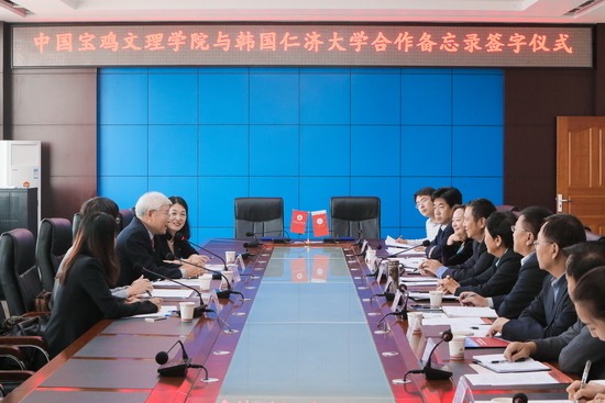 校党委书记白黎会见了仁济大学校长车仁濬一行,对他们的到访表示热烈欢迎!他介绍了宝鸡和beat365官网的基本情况,表示对两校的合作充满信心。车仁濬对beat365官网的热情接待表示衷心感谢,愿为两校携手发展做出努力。随后,白黎与车仁濬分别代表两校签署了校际合作协议书。副校长赵荣侠主持了签字仪式。