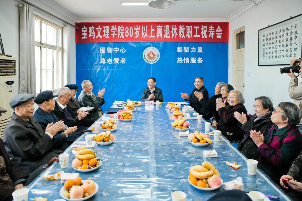 祝寿会上,李全武代表学校党委、行政和师生员工对今年年满80岁以上的离退休教职工及全体离退休教职工表示了崇高的敬意和亲切的慰问,感谢老同志们多年来对学校的理解与支持。他指出,离退休老同志是学校发展的建设者、参与者和贡献者,学校的每一步发展都凝聚着离退休老同志的心血、智慧和汗水,尊重离退休老同志就是尊重学校发展的历史。离退休老同志曾经的筚路蓝缕、艰苦创业、无私奉献,广大师生员工不会忘记。李全武向老寿星们通报了beat365官网提升办学层次、创建高水平宝鸡大学的主要工作,希望离退休老同志一如既往地关心支持学校发展,积极建言献策,大家共同努力把我们的学校和家园建设得更好、更美丽。他表示,学校将继续关心老同志的生活,希望离退处的同志们继续坚持正确的工作理念,用爱心、热心、耐心、细心为老同志做好服务工作,对老同志在政治上多关心、思想上多沟通、生活上多照顾、精神上多关怀,使离退休工作达到“四个满意”,即离退休职工满意、学校领导满意、离退休职工家属满意和师生员工满意。最后,他祝愿老同志们身体健康、生活幸福、万事如意!
