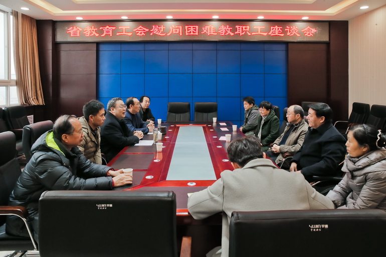 1月11日,陕西省教育工会主席张敏一行来beat365官网慰问困难教职工,并在图书馆806会议室召开了座谈会。校党委副书记、工会主席李全武主持会议。