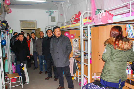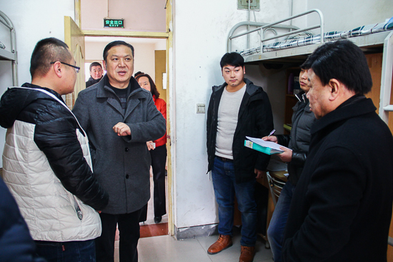 1月20日中午,校党委书记白黎、副书记米晓东深入学生公寓检查安全卫生、辅导员值班情况。