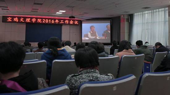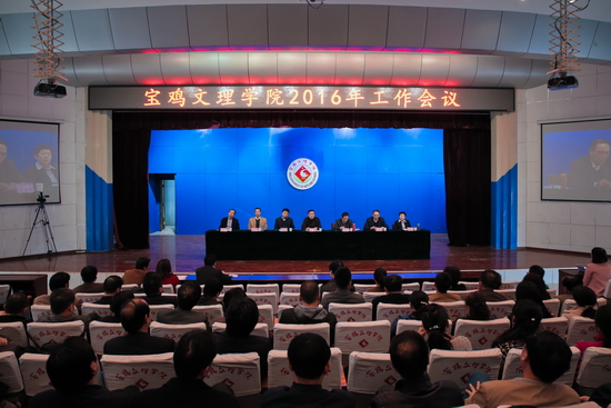 司晓宏作了题为《推进综合改革提升发展速度奋力开创高水平大学建设新局面》的讲话,他从七个方面简要回顾总结了2015年学校的行政工作,一是创建高水平宝鸡大学的工作迈出了坚实的第一步;二是严肃了教学纪律和规范;三是科研和学科建设的工作力度进一步加强;四是加强了师资队伍建设,规范了进人机制;五是校园基础建设和后勤服务工作迈出坚实步伐;六是较大幅度地提高了广大教职工的津贴收入;七是教职工的精神面貌和大学文化正在发生着积极的嬗变。就2016年重点工作他从八个方面作了强调:一是科学制定“十三五”规划,明晰学校顶层设计;二是扎实推进“创大”工作,开创“创大”工作新局面;三是积极推进教学改革,努力提升人才培养质量;四是持续提高科研和学科建设水平,努力增强学校综合办学实力;五是深化人事分配制度改革,大力加强师资队伍建设;六是加快基础设施建设步伐,努力改善办学条件;七是全面推进综合改革、建立健全现代大学制度;八是加强开放办学力度,积极推进国际化进程。