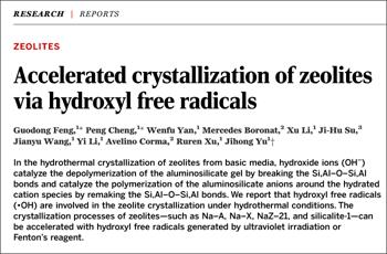 论文揭示了该研究团队最新的科学发现,即:羟基自由基存在于沸石分子筛的水热合成体系,并可以显著加速沸石分子筛的晶化。通过紫外照射或Fenton反应向沸石分子筛水热合成体系额外引入羟基自由基,能够显著加快沸石分子筛的成核,从而加速其晶化过程。这一发现是无机微孔晶体材料生成机理研究方面的重要突破,使人们对沸石分子筛的生成机理有了新认识,为在工业上具有重要需求的沸石分子筛材料的高效、节能和绿色合成开辟了新的路径。(科技处、化学化工学院 文/鲁海涛)