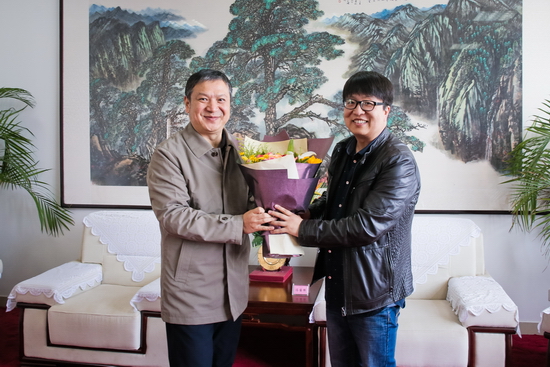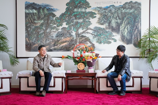4月7日上午,校党委书记白黎在图书馆八楼接待室接见了冯国栋博士。
