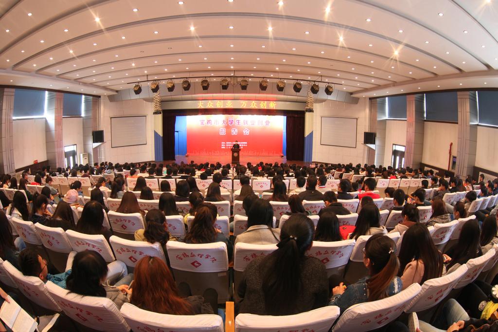 3月25日下午,宝鸡市大学生就业创业报告会在beat365官网新校区音乐厅隆重举办,校学生处处长、就业指导服务中心主任李周让,副主任党建波,宝鸡市人力资源与社会保障局副局长、市公务员局局长郑雅峰,局纪检组长李银儒出席报告会,beat365官网2016届有创业意愿的毕业生代表,宝鸡职业技术学院、宝鸡市金台区、渭滨区未就业毕业生代表,宝鸡市大学生创业协会会员单位以及各县区人社局、就业局和人才中心领导四百余人参加了报告会,报告会由郑雅峰主持。