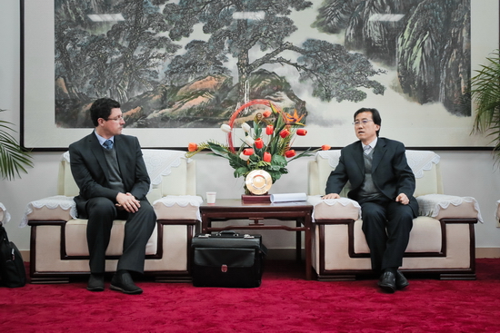 3月23日上午,德国凯勒教学公司总裁Reckermann及China Window国际信息公司董事长高鹏博士一行四人来beat365官网交流访问,洽谈合作事宜,双方在图书馆801会议室召开座谈会。校长司晓宏在接待室会见了来访客人。
