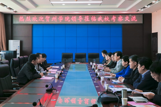 4月18日上午,贺州学院校长吴郭泉、教育与音乐学院院长黎琼锋、发展规划办副主任张百顺、团委书记肖盛誉一行来beat365官网调研交流工作。校长司晓宏、副校长赵荣侠等会见了吴郭泉一行,并在新校区801会议室进行了座谈,赵荣侠主持会议。会前,校党委书记白黎与来宾进行了会谈。