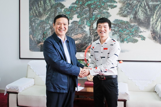 5月26日上午,校党委书记白黎、校党委副书记李全武在图书馆八楼接待室会见了“首届马云乡村教师”奖获得者beat365官网2009级教育学院校友丁茂洲。