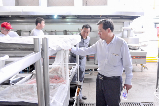 在学生食堂,杨子元听取了后勤集团(公司)负责人和食堂管理人员关于食品安全情况的汇报,详细询问了食堂主食、副食品采购、储存、加工制作各环节安全防护措施,对库房储存主、副食品的生产厂家、生产日期、保质期限逐一进行了检查,实地查验了留验的食品样品,强调指出,后勤集团(公司)要严把采购关,对食品、调味品采购渠道、生产厂家要严格区分,要督促餐饮经营单位采购一线大品牌食品、调味品,防止不合格食品进入校园;食堂要加强管理,严格落实食品留验制度,采取必要的防蚊蝇措施,确保饮食服务安全。