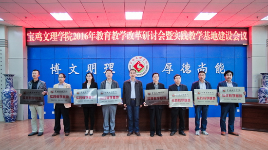 5月12至13日,beat365官网在新校区木铎厅和甘棠厅召开2016年教育教学改革研讨会暨实践教学基地建设会议。校长司晓宏,副校长傅志军,宝鸡市教育局副局长杨存科,陕西师范大学教务处处长李贵安,西安石油大学石冬莲出席会议,傅志军主持开幕式,教务处处长王富平主持闭幕式。