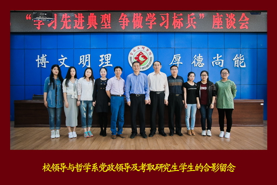 白黎对哲学系、化学化工学院和地理与环境学院三个“明星宿舍”的18名学生集体考研成功表示祝贺。他指出,今天召开的座谈会,是开展“两学一做”学习教育的具体实践,用身边的先进典型教育引导全校师生。“三个宿舍”18名学生集体考取研究生,反映了学校这些年抓内涵建设、抓教风学风建设、抓质量工程所取得的可喜成果。三个“明星宿舍”之所以会出现在这三个院系,一是由于优良的学风对学生起着潜移默化的作用,为学生积极考研提供了良好的条件;二是院系党政班子重视,管理有方,采取有力措施积极搭建考研平台;三是拥有一支师德高尚、爱岗敬业、教风优良,具有严谨的科学态度和高度责任心的教师队伍,高师严师出高徒;四是学生内在自强不息的奋斗精神;五是有良好的宿舍文化氛围。
