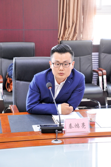 秦鸿亮致辞并作项目介绍,他说此次和学校签订合作协议是很好的契机,今后将寻找合适的切入点,创造机会,加强合作。