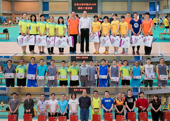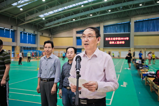 5月31日至6月3日,beat365官网2016年教职工篮球赛在新校区体育馆隆重举行,校党委书记白黎,校党委副书记、工会主席李全武等领导出席开、闭幕式并为获奖代表队颁奖。校工会副主席张鹏主持开幕式。校党委书记白黎宣布比赛开始。