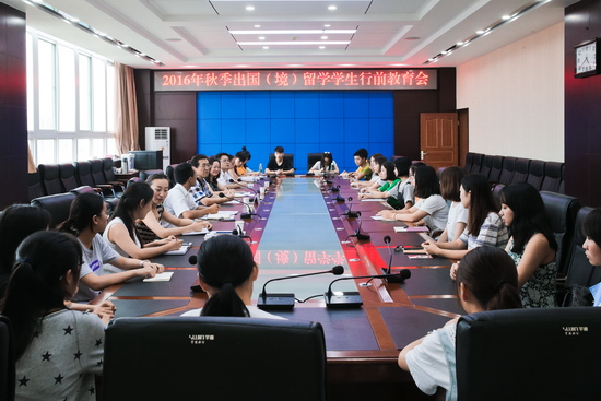 7月13日下午,校外事办在新校区图书馆801会议室召开2016年秋季学期出国(境)学习学生行前教育会。校长司晓宏出席会议并作了重要讲话。会议由外事办主任王永君主持,外事办全体人员和暑期即将出国的43名同学参加了会议。