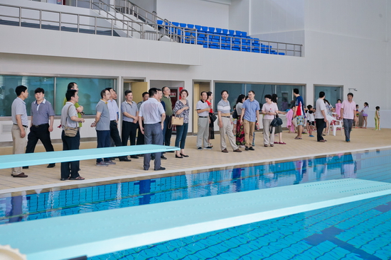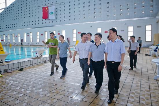 8月12日,陕西省政协经济科技委员会办公室主任苗强带领部分省政协常委、委员与民主党派一行19人来游泳跳水馆就“城市公共服务设施建设情况”进行专题调研。副校长王富平就游泳跳水馆开放运行情况向调研组进行了介绍,宝鸡市体育局局长李富生就游泳跳水馆建设、公共服务情况及下步打算进行介绍协商。