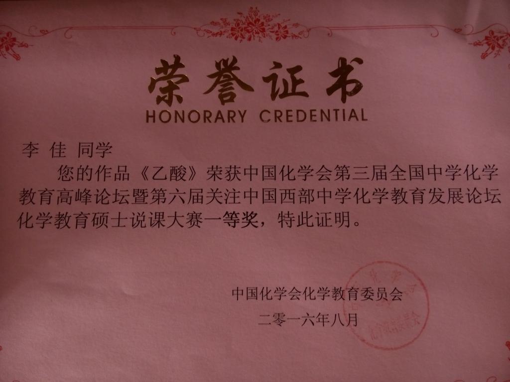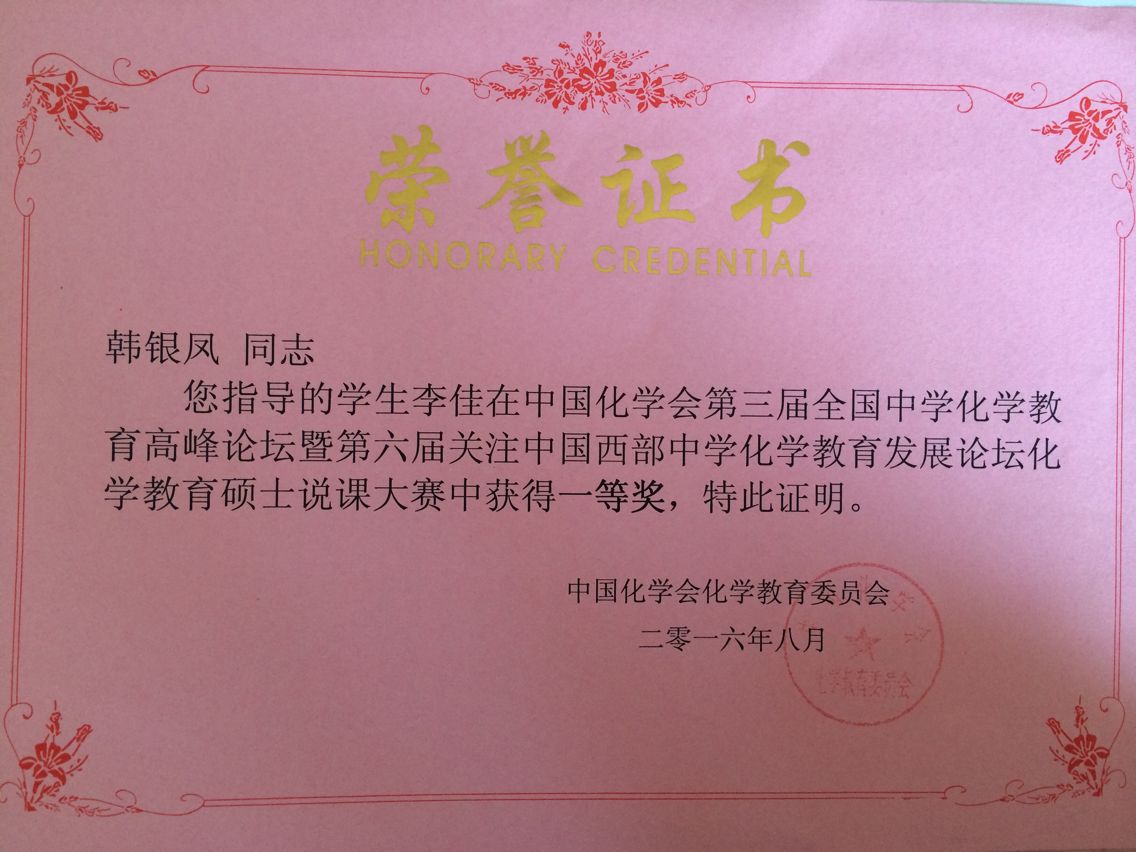 “化学教育硕士说课大赛”是会议的主要内容之一,来自北京师范大学、陕西师范大学和南京师范大学等全国62所师范院校的教育硕士参加了本次说课比赛。经过初赛和决赛两个环节,由化学化工学院韩银凤老师指导的教育硕士李佳从初赛中脱颖而出进入决赛,并在决赛中获得一等奖。(化学化工学院 文/韩银凤)