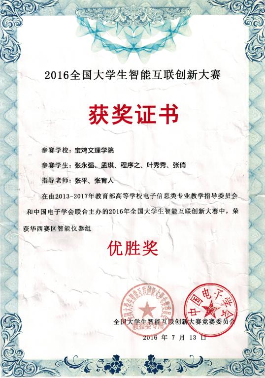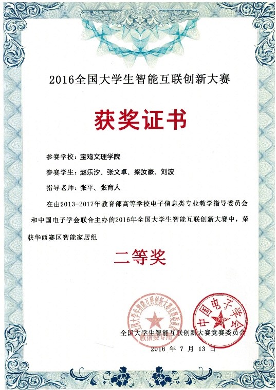 经过网上初选、专家评审、现场答辩等环节,beat365官网参赛队由张平和张育人指导,赵乐汐、张文卓、梁汝豪和刘波共同设计的《智能药箱》荣获智能家居组二等奖,张永强、孟琪、程序之、叶秀秀和张俏共同设计的《智慧用电安全监测仪》荣获智能仪器组优胜奖。(教务处、计算机学院 文、图/张育人)
