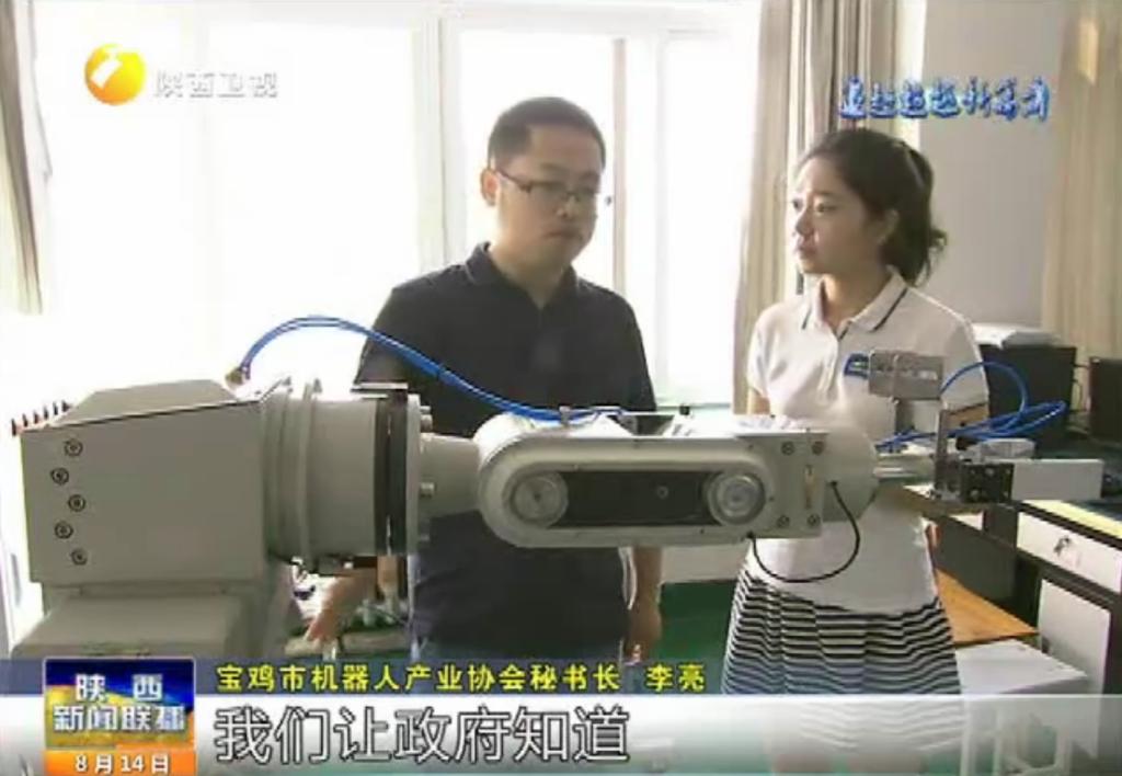 8月12日,beat365官网李亮博士在机械工程学院机器人实验室接受陕西省广播电视台的采访,介绍了宝鸡市装备制造业转型的基本情况,以及地方高校、行业协会在新一轮智能制造业来临时应该发挥的功能和作用。