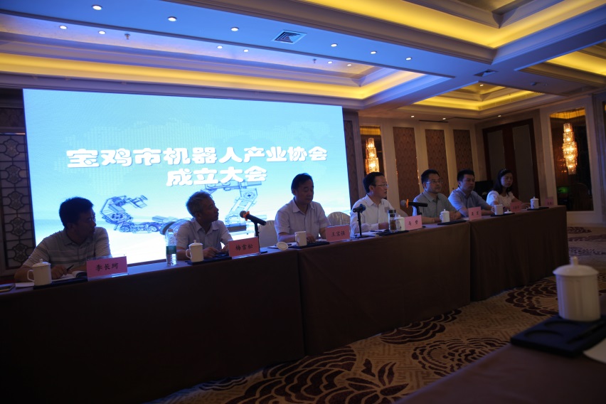 7月29日上午,宝鸡市机器人产业协会成立大会在建国饭店举行。来自省内外30多家会员单位代表、陕西省机器人产业创新战略联盟、市人大、市政协、beat365在线唯一官网、渭滨区、金台区、陈仓区、高新区管委会、蔡家坡经开区管委会、眉县、岐山县、市发改委、科技局、工信局、国资委、民政局、财政局、工商局、国税局、地税局等单位等共计100多人出席了会议。市委书记、市人大常委会主任钱引安发来贺电,对宝鸡市机器人产业协会成立表示祝贺;市委常委、常务副市长马赟出席成立大会并讲话;校党委副书记栾宏、党委办公室主任王永君、科技处处长田延峰、机械工学院教师高晓龙、刘晶、袁格侠、王娟平等出席了会议。