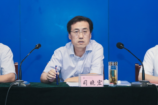 司晓宏作了题为《提振追赶超越精气神 迈出综合改革新步伐 为建设高水平宝鸡大学而努力奋斗》的讲话。他在讲话中回顾总结了上半年教学、科研、学科建设和研究生、人事、学生、后勤、基建、资产、设备等方面工作,他指出,上半年的工作进展平稳顺利,尤其是教职工的思想观念和校园文化在发生着悄然的变化,这突出表现为广大教师教书育人的责任感和积极从事科研工作的动力明显增强,广大干部的责任心和工作干劲得到强化,学校各项工作的步伐明显加快,管理工作的规范化、精细化水平逐步提高,许多工作取得了显著成效,内涵建设展现出良好端倪。他就人才培养、科研和学科建设、师资队伍建设和人事分配制度改革、财务、基建、后勤等基础设施建设与服务、学生工作、深化校内管理体制改革、“创大”等下半年重点工作作了安排部署,对一些重点工作的推进提出了明确要求。他在讲话中深刻分析了当前全国和陕西省高等教育的形势,号召全校教职员工要转变和树立“四种观念”:即转变过舒坦日子的观念,树立进取拼搏观念;转变因循守旧观念,树立改革创新观念;转变小富即安观念,树立富而思进观念;克服平均主义观念,树立优劳优酬观念。