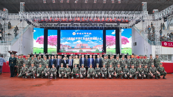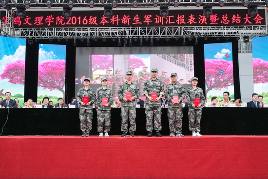 学工部部长李周让宣读了军训表彰决定,对6个先进单位、21名优秀教官和127名“军训先进个人”予以表彰。校领导和部队首长为受表彰的单位和个人颁发了奖牌和证书。