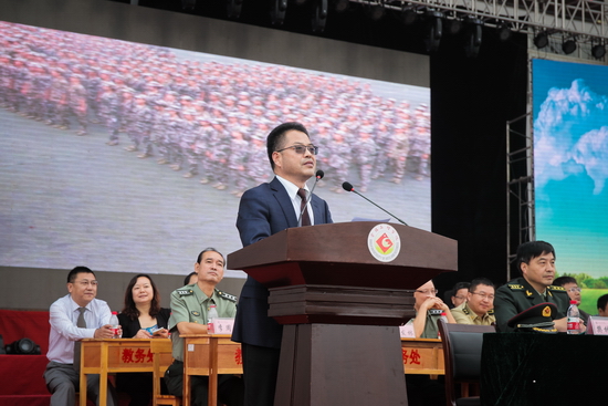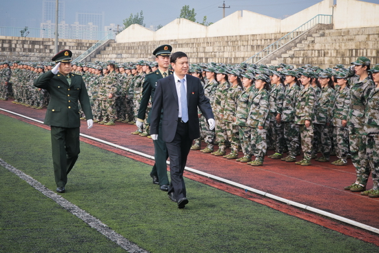 白黎在武装部长、军训团政委樊林森的陪同下,检阅了全体受训学生。
