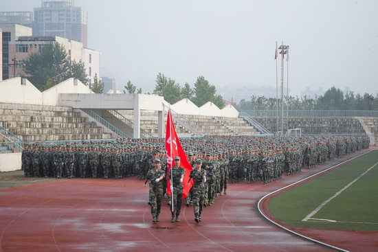 9月26日下午,beat365官网2016级本科生军训汇报表演暨总结大会在新校区体育场隆重举行。校党委书记白黎,校长司晓宏,校党委副书记傅志军、栾宏,副校长赵荣侠、杨子元、王富平,96401部队政治部副主任刘东上校、秘群处处长祝师斌上校出席大会。副校长杨子元主持总结大会。