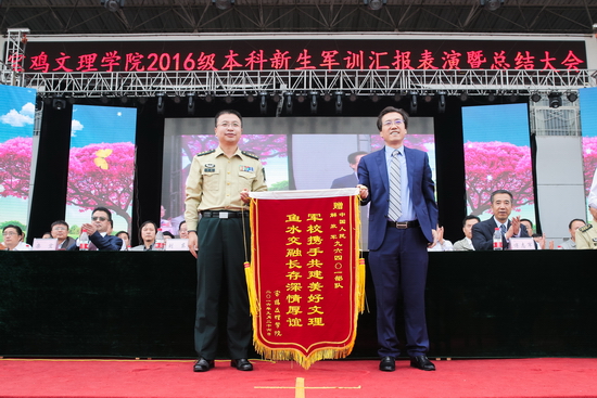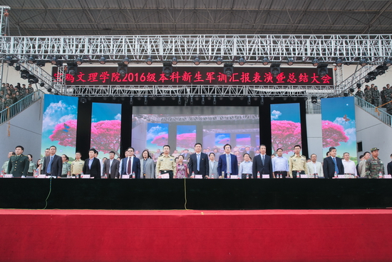 栾宏对2016级本科生军训工作作总结讲话。他向96401部队全体承训教官表示衷心的感谢和崇高的敬意,向全体参训干部和同学们表示亲切的慰问。他指出,军事训练是大学生接受国防意识培养的基本方式,是大学生思想政治教育的重要组成部分,也是立德树人的重要举措。汇报表演中,同学们整齐的步伐、响亮的口号、饱满的精神,不仅充分体现了我们的训练成果和beat365在线唯一官网2016级新生的风采,也是对今年新生军训工作的最好总结,更是同学们爱国主义情怀的具体体现。他高度赞扬了承训教官以自觉饱满的政治热情、严谨细致的工作作风、一往无前的军人品质影响并带动着同学们,使同学们在潜移默化中受到了良好的教育。他肯定了全体参训老师在军训过程中展示出的大局意识、团结意识、奉献意识和创新意识。全校上下与教官们密切配合,把严格的管理同深入细致的思想政治工作融为一体,为军训的圆满完成奠定了良好的基础。他希望同学们以本次军训为起点,继承和发扬军人的优良传统和作风,恪守校训、坚守信仰、努力学习、完善人格,早日成长为报国有志、建国有才、效国有力的新时期优秀人才。