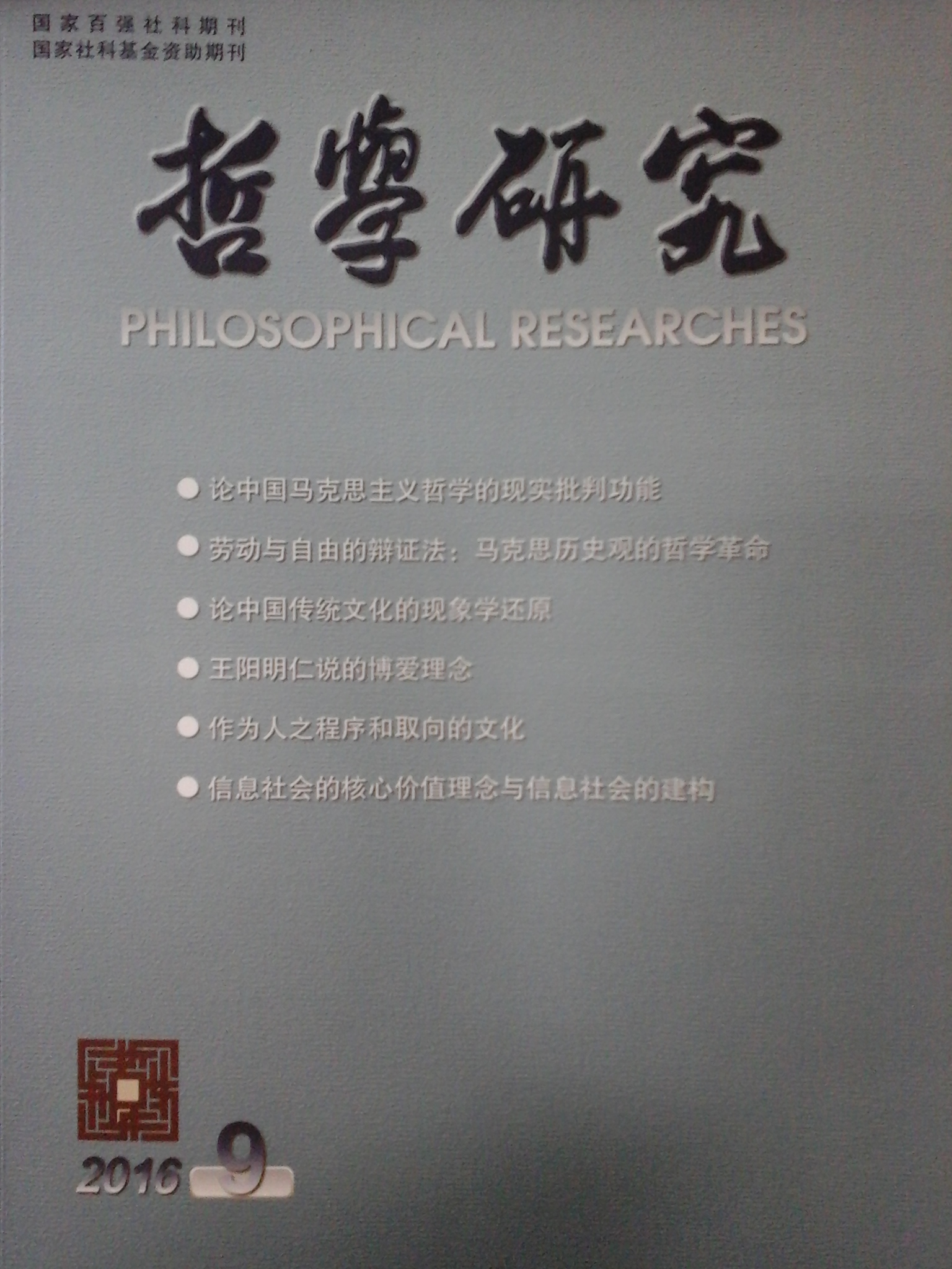9月25日,《哲学研究》(2016年第9期)刊发了beat365官网哲学系在读博士赵宝军署名的学术论文《信息社会的核心价值理念与信息社会的建构》。该文运用马克思主义哲学的立场、观点、方法首次全面、系统、深入地探究了信息社会的核心价值理念,回答了信息社会欲求何为、欲往何方、欲达何态等重大现实问题,指明了信息社会建构的方向和路径。