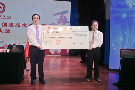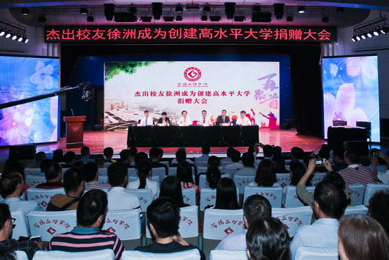 栾宏代表学校与徐洲成签订了捐款协议。司晓宏接受捐赠支票并向徐洲成颁发了捐赠证书和金质奖章。校友代表雪彩娟向徐洲成赠送了剪纸画。校友代表刘晓宏和文学与新闻传播学院党总支书记李鑫分别发言。