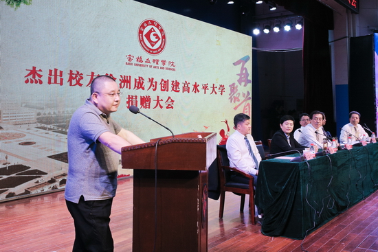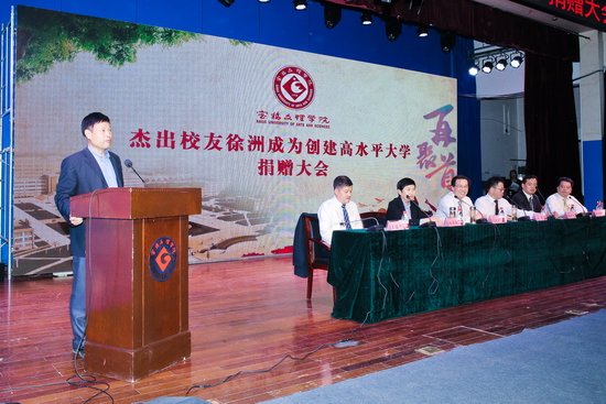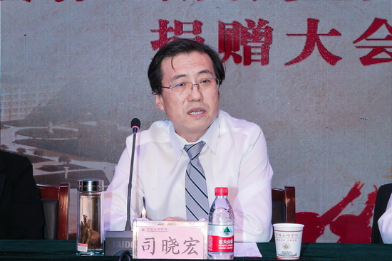 司晓宏在致辞中代表全校师生对徐洲成校友慷慨解囊捐赠100万元表示衷心的感谢和崇高的敬意,向多年来给予学校关心、支持与帮助的各位领导和来宾表示诚挚的谢意。他指出,徐洲成校友身上保持着一种励志弘毅、艰苦创业的奋斗精神,体现着一种诚正质朴、永葆本色的品格精神,拥有着一种情寄母校、充满大爱的高尚情怀。本次捐赠体现着一种爱心,体现着徐洲成校友回馈社会、回馈母校、造福桑梓、报效国家的一种大爱情怀。我们接受的不仅仅是100万元,而是这100万元背后的博爱精神、仁义品格。这是我们广大师生应该学习、效仿的,希望广大学生能从中获得一种体会、一种借鉴。最后,他表示一定用好这笔善款,把善款用在有利于学生发展、有利于学生成长的最为需要的地方,以达到善款真正的目的和功能。