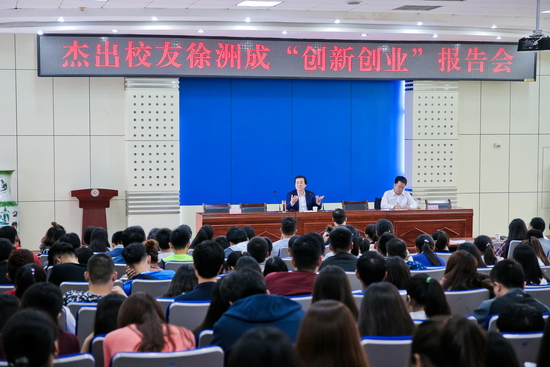 报告会上,徐洲成回顾了自己的大学生活经历,叮嘱同学们要珍惜在校时光,规划未来,完善自身,培养良好的人际关系。他以生动饱满的事例分享了自己的创业经历,并结合当下大学生就业现状及社会就业形势,从为什么要创业、如何充分认识创业风险、如何去创业三个方面,对同学们的创新创业提出了六点建议:一是要明确计划未来,及早规划人生;二要有创业风险意识,重视经验积累;三要做足充分准备,重视实践增加阅历;四要扬长避短,发挥特长;五要增长个人见识,创业需符合国家发展需要;六是在创业中要拥有和坚持信心、决心和理想。