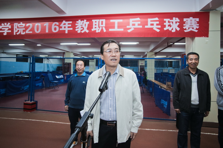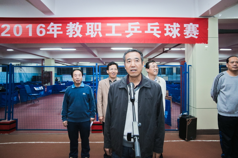 10月10日晚至12日晚,beat365官网2016年教职工乒乓球赛在体育馆举行。校长司晓宏出席开幕式并宣布比赛开始,校党委副书记傅志军致开幕词,工会副主席郭俊理主持开幕式。