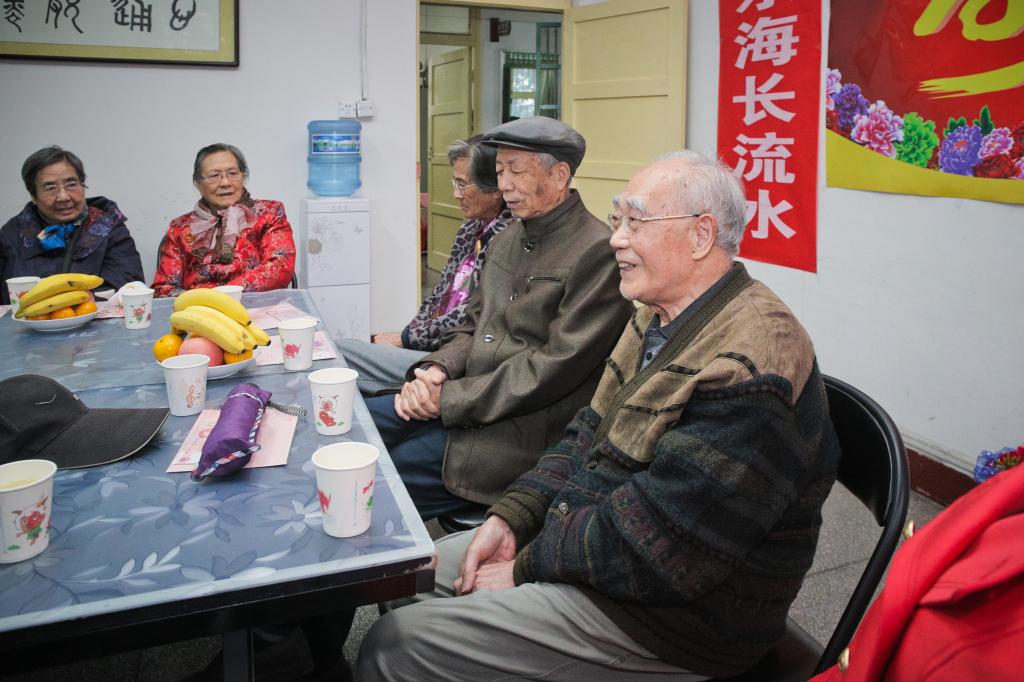 司晓宏和杨子元为老寿星赠送了贺礼和鲜花,老寿星一起吹灭蜡烛许下美好愿望,品尝生日蛋糕。