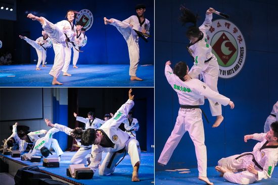 东亚16名跆拳道系学生进行了精彩的跆拳道表演,为在场的观众献上了一场精彩纷呈的文化盛宴。
