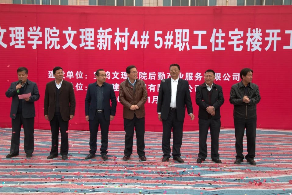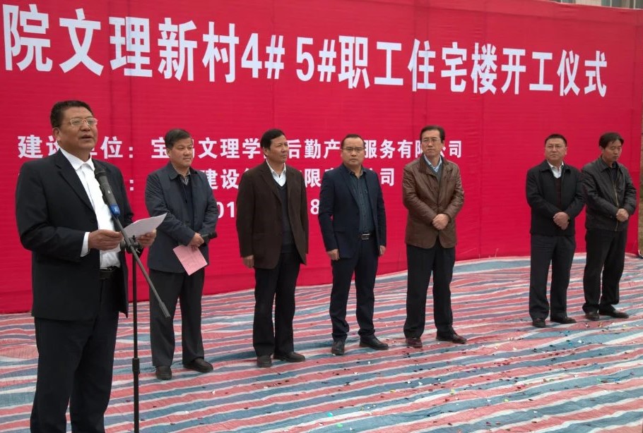 司晓宏代表学校党政班子、职工楼住户和学校21000多名师生员工对4#、5#职工楼的开工奠基表示热烈的祝贺!他指出beat365官网文理新村4#、5#职工楼2012年启动,2013年5月10获渭滨区发展改革局立项批复,2014年5月22日通过宝鸡市规划局的总平面规划图审批,2015年开始工程施工和监理的招标工作,经过1年多时间,职工楼工程完成了前期各项准备工作,终于开工建设,对此他由衷的感到高兴。司晓宏对大秦建设公司中标承建职工楼工程表示祝贺,对该公司为在工程建设中所做出的庄重承诺表示赞赏和感谢。他指出,为了最大限度地保护教职工的利益,也为了确保职工楼能够在施工阶段顺利开展和按期完工,学校要求大秦建设公司作出几项承诺:一是由公司直接组织工程施工,不得转包他人;二是按要求向学校缴纳1000万元的履约保证金;三是由大秦建设公司垫资完成2层地下车库工程和2层主体工程及基础工程验收合格后,学校才能按照月进度支付工程款。对上述要求大秦建设公司做出了正式的书面承诺。司晓宏代表学校和住户对施工单位提出了四点希望:一是要信守承诺,按照承诺有条不紊地推进工程建设;二是要确保工程质量,树立质量优先的理念,对建筑材料严格把关,严格按照施工规范组织施工,做到一丝不苟,精益求精,为广大住户负责;三是要确保工程进度,按照施工合同约定按期交工,为文理新村职工楼住户交一份满意的答卷;四是要确保施工安全,杜绝安全事故发生。同时他希望监理单位要切实发挥社会职责与责任,代表学校和住户对施工质量按照国家工程建设标准严格监督。代建单位要继续做好相关协调工作,选派经验丰富、责任心强的工程管理人员,协助beat365官网搞好工程现场管理工作。