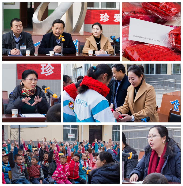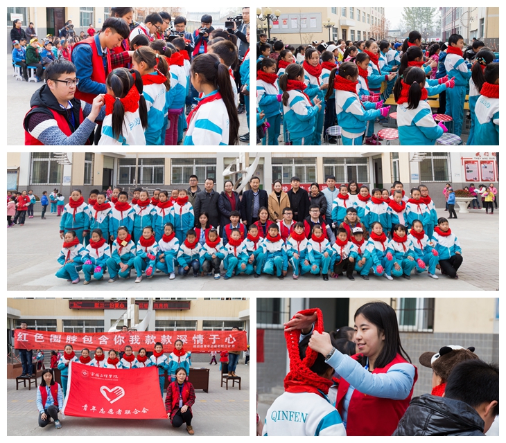 在校团委的大力宣传和动员下,校青年志愿者联合会在全校范围内开展了以“情暖冬日爱相随,这个冬天不太冷”为主题的关注留守儿童编织红围脖爱心活动。爱心行动得到了广大青年大学生的热情响应,积极为农村留守儿童奉献爱心。11月16日,300多条带着宝文理大学生暖暖爱心的红围脖送到了陇县温水镇火烧寨小学。学工部副部长、校团委书记黄玮带领8名大学生志愿者代表为火烧寨小学的147名留守儿童送去了温暖。