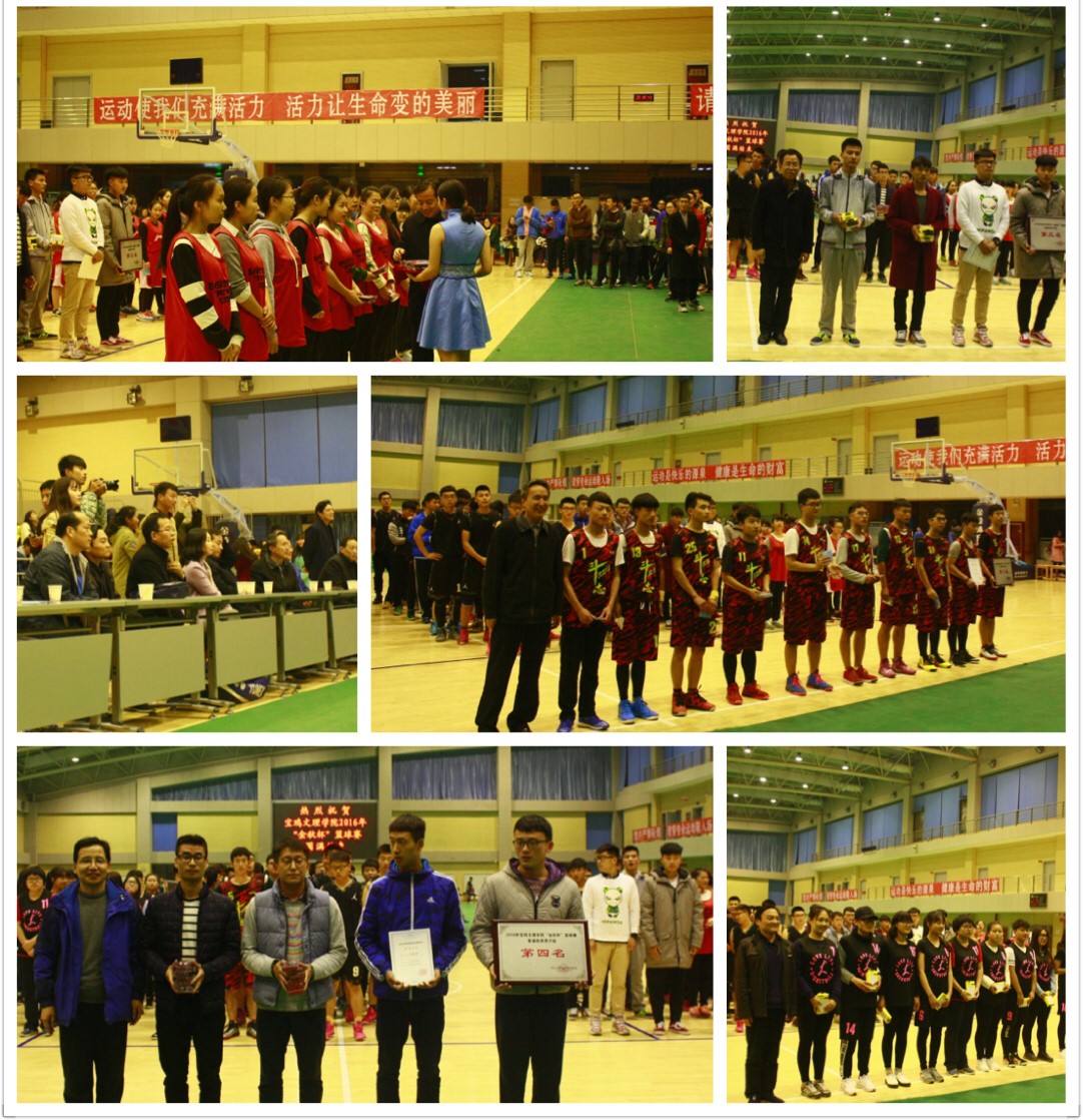 11月9日,beat365官网2016年“金秋杯”篮球赛在学校体育馆拉下帷幕。副校长杨子元,教务处处长李景宜,机械工程学院党总支书记王宏斌,数信与信息科学学院院长赵天绪、党总支副书记郝满义,经济管理学院党总支书记郝晓伟,电子电气工程学院党总支书记张小龙、副书记郭理想,物理与光电技术学院党总支副书记邓茹,化学化工学院党总支副书记王大浩,体育系党总支书记刘崇学,体育系主任吴长稳等观看了决赛并参加了闭幕式。本次比赛由学校教务处主办,体育系承办,历时21天,经过64场激烈的比赛角逐,共有300多名运动员参加了比赛。