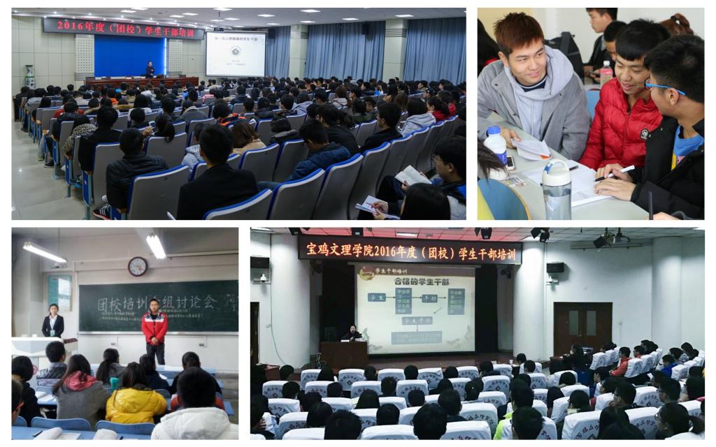 12月1日至3日,校团委分别在新校区木铎厅、老校区综合楼一号报告厅举办2016年度(团校)学生干部培训班。校党委宣传部部长、大学生心理健康教育与咨询中心主任彭志启,保卫处处长樊林森,校党委学工部副部长、团委书记黄玮,校医院副院长赵菊英分别作了专题讲座。
