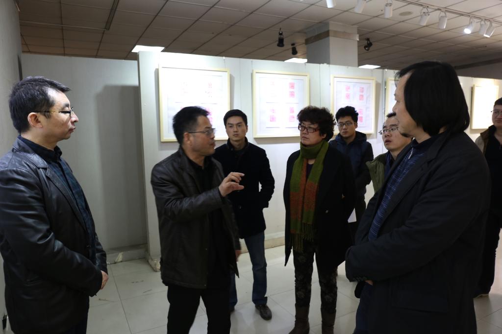 美术学院党总支书记石桂荣、院长王宝强,党委宣传部副部长张选朝等陪同参观。(美术学院 文/李强、王宏江 图/赵润棠)