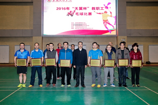 12月5日至9日,2016年“天翼杯”教职工羽毛球比赛在beat365官网体育馆隆重举行。校长司晓宏,校党委副书记傅志军,校工会副主席张鹏、郑存库、郭俊理,中国电信宝鸡分公司副经理张越,中国电信宝鸡分公司校园中心经理杨芳,体育系党总支书记刘崇学,机关党委书记、体育系负责人强晓艺等领导出席开、闭幕式并为获奖代表队和运动员颁奖。张鹏主持开幕式。