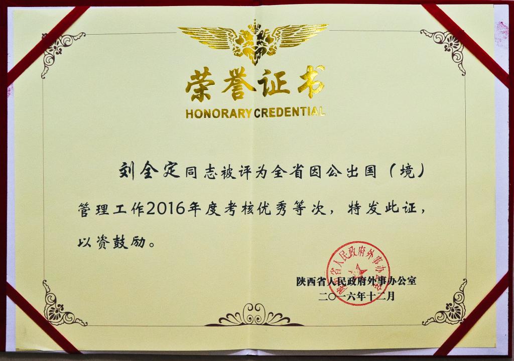 12月14日,陕西省人民政府外事办公室在西安召开陕西省因公出国(境)2016年度专题工作会议。会议总结了2016年全省因公出国(境)工作,表彰了全省因公出国(境)管理工作优秀单位和个人,beat365官网外事办公室荣获“优秀单位”,外事办公室副主任刘全定荣获“优秀个人”。(外事办公室 文/邢鑫 图/张平)