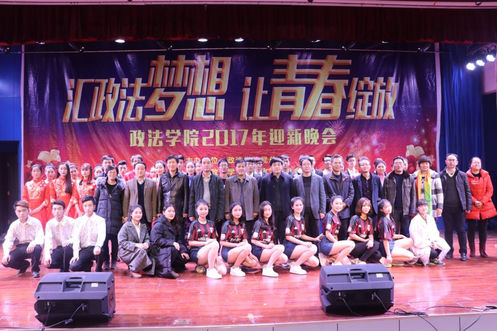 12月21日晚,政法学院在新校区音乐厅举办2017年“汇政法梦想 让青春绽放”表彰暨迎新晚会。副校长王富平、学生处处长李周让,保卫处处长樊林森,化学化工学院党总支书记李建峰以及学院全体师生及其他院系学生代表共500余人观看了晚会。