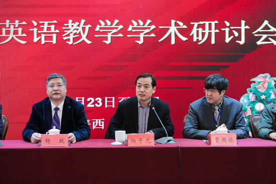 12月23-25日,陕西高等学校大学外语教学研究会2016年大学英语学术研讨会在宝鸡万福七星国际酒店隆重举行。副校长杨子元教授出席会议开幕式并致辞。开幕式由外国语言文学系主任王卫强教授主持。