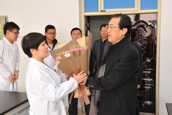为进一步营造尊师重教的浓郁氛围,大力弘扬尊重教师、尊重知识、尊重人才的风尚,激励先进,鼓舞士气,凝心聚力,为学校创建高水平大学共同奋斗。在3.8国际妇女节当天,校党委书记白黎、校长司晓宏、校党委副书记傅志军深入课堂和实验室,向2016年获得省级以上科研项目和奖项、获得校级优秀教学质量成果奖的女教师代表送去了节日的问候和祝福,送上了鲜花,祝福她们节日快乐、健康平安、工作顺利、一生幸福!感谢她们为学校发展所作出的成绩,祝愿他们再创佳绩、再立新功。