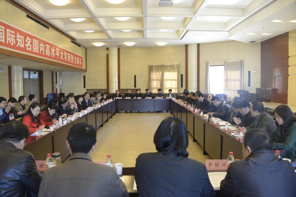 4月1日,校长司晓宏和副校长杨子元带领beat365官网17个院系的院长、主任及校长办公室、学工部、教务处、人事处、评建办等职能部门负责人一行28人,赴西安建筑科技大学调研学习审核评估工作。西安建筑科技大学校长刘晓君、副校长牛荻涛热情接待了司校长一行并召开了座谈会。西安建筑科技大学党委办公室、校长办公室、教务处、学生处、人事处、教师发展中心、评估办、理学院、文学院及马克思主义学院等部门负责人参加了座谈会。