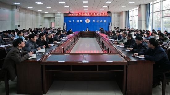 4月11日下午,学校在新校区甘棠厅召开2017年春季稳定安全工作会议,党委副书记栾宏出席会议并讲话。