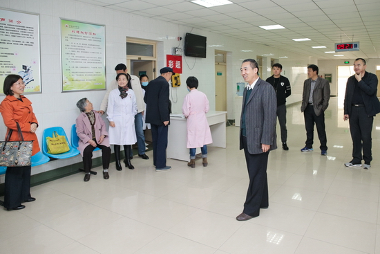4月13日上午,校党委副书记傅志军看望慰问为教职工体检的校医院工作人员,他走访了校医院开展体检的各科室,详细询问体检的进行情况,并与医护人员进行了亲切的交谈,对他们的辛勤工作给予了充分肯定并表示感谢。他希望全体医护人员再接再厉、克服困难,认真做好全校教职工的体检工作,为全校师生员工的身心健康提供更加有力的保障。同时,傅志军询问了参加体检教职工的工作生活和身体状况,祝愿大家保重身体,加强锻炼,努力工作。