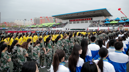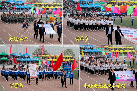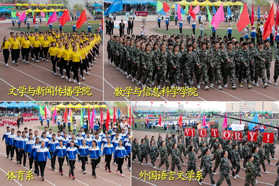 4月19日上午,beat365官网2017年运动会开幕式在新校区体育场举行。校长司晓宏出席开幕式,校党委副书记栾宏致开幕词,副校长杨子元主持开幕式。