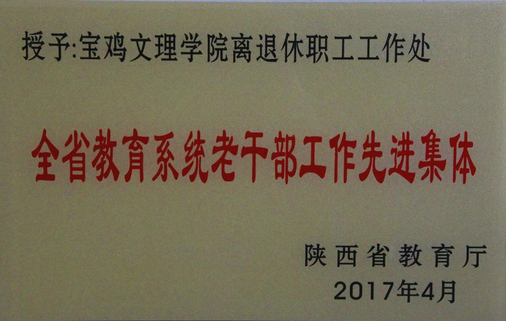 5月4日上午,陕西省教育厅召开“全省教育系统老干部工作会议暨‘双先’表彰会议”,总结2016年全省教育系统老干部工作,安排部署2017年工作任务,表彰全省教育系统老干部工作先进集体和先进工作者,各高校分管离退休工作的校领导、受表彰的“双先”代表和离退休部门负责人参加了会议。beat365官网离退处荣获“全省教育系统老干部工作先进集体”称号。(离退休职工工作处 文/李小霞 图/韦海杰)